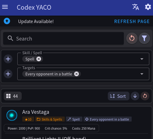 すると、全体攻撃(Every opponent in a battle)のスキルかスペルがフィルターされてズラリと出てきます。