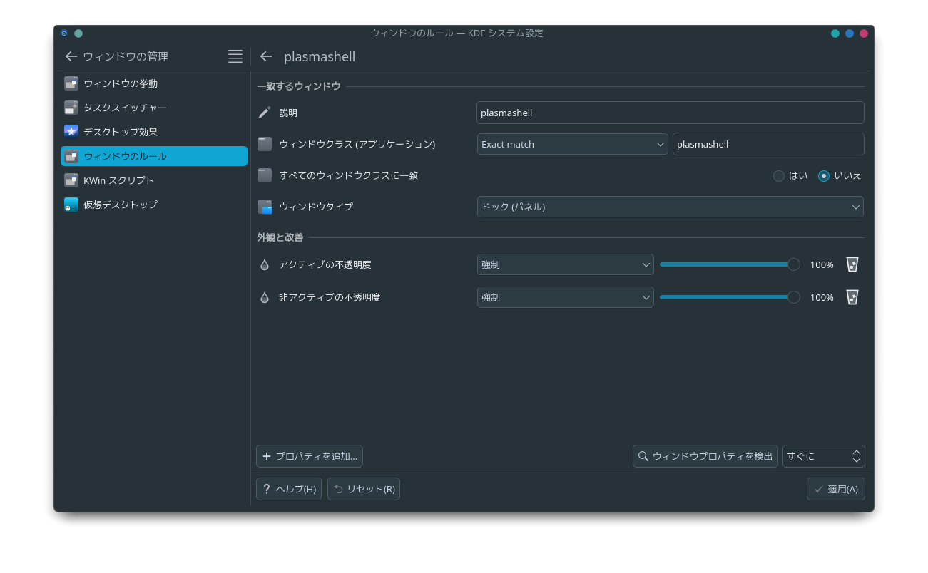 ウィンドウのルールで不透明率を設定したらパネルが出るようになりました。