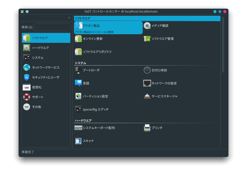 ソフト管理からブートローダーの設定まで幅広く一元管理してくれるアプリがプリインストールされているので、なにか設定したかったらまずYaST、という簡単な流れが出来上がっています。