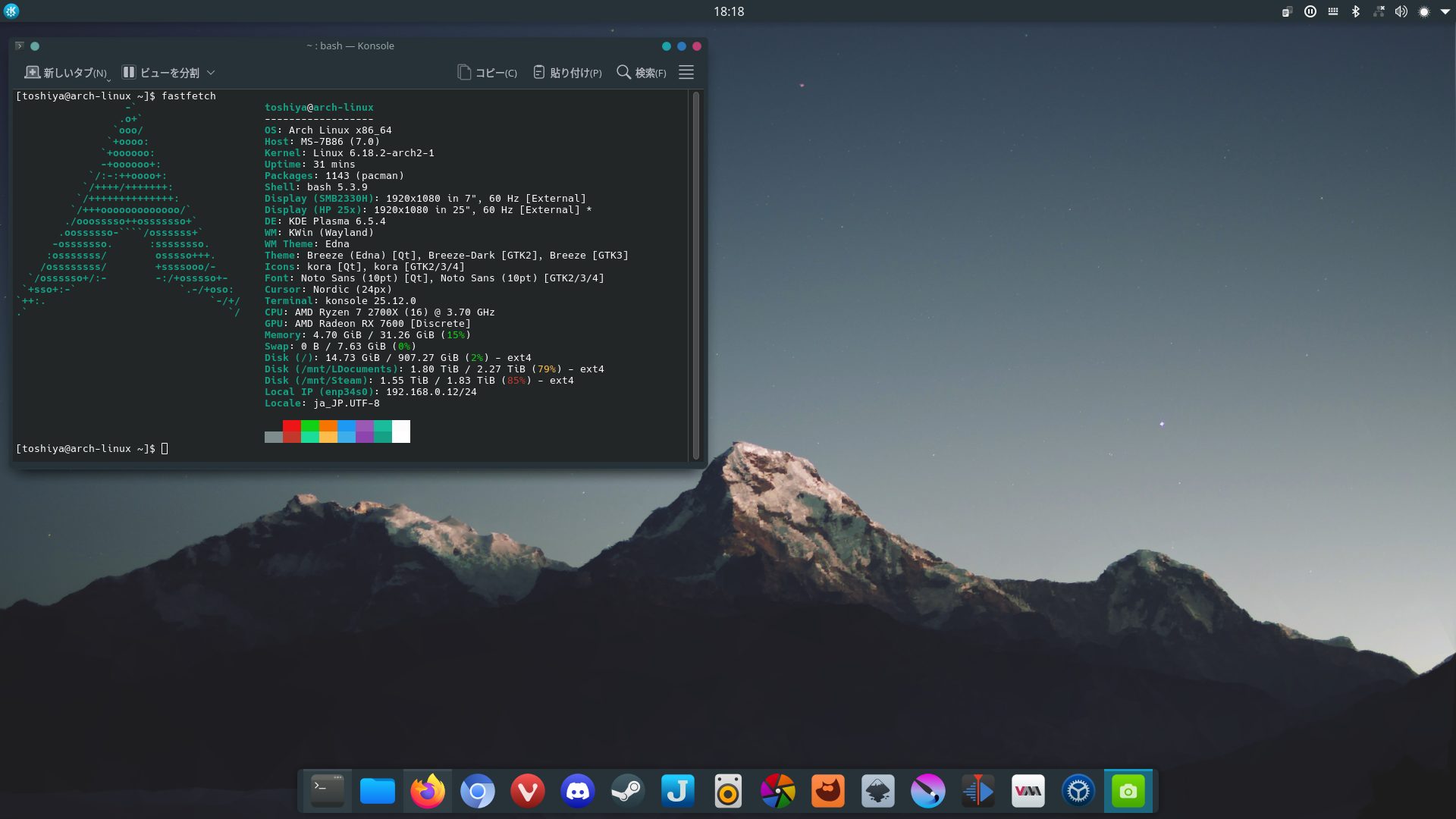 あるいはGUI補助のあるEndeavourOSとかにしたほうが良いです。